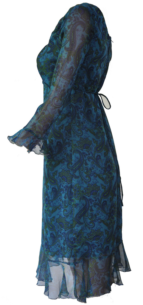 ¾ sleeves, square gypsy neckline, chiffon polyester material,